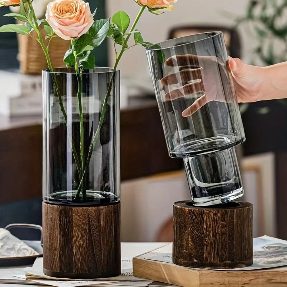 الحد الأدنى النباتات المائية زهرية غرفة المعيشة المنزلي طاولة القهوة تشكيلة زهور قاعدة خشبية مزهرية زجاجية شفافة ديكور المنزل