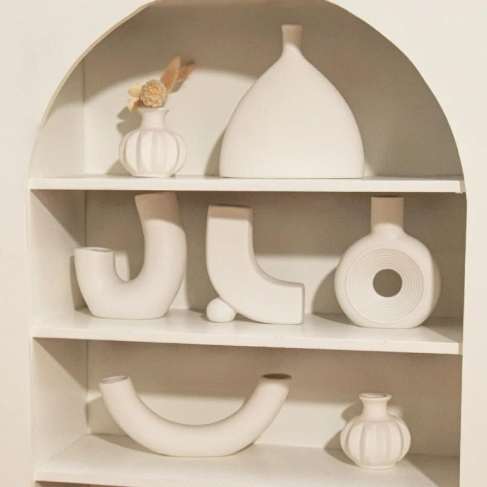 مزهرية سيراميك بيضاء مزهرية زخرفية حديثة لعشب بامباس مزهريات زهور بسيطة لقطعة مركزية لحفلات الزفاف والمكتب وديكور المنزل